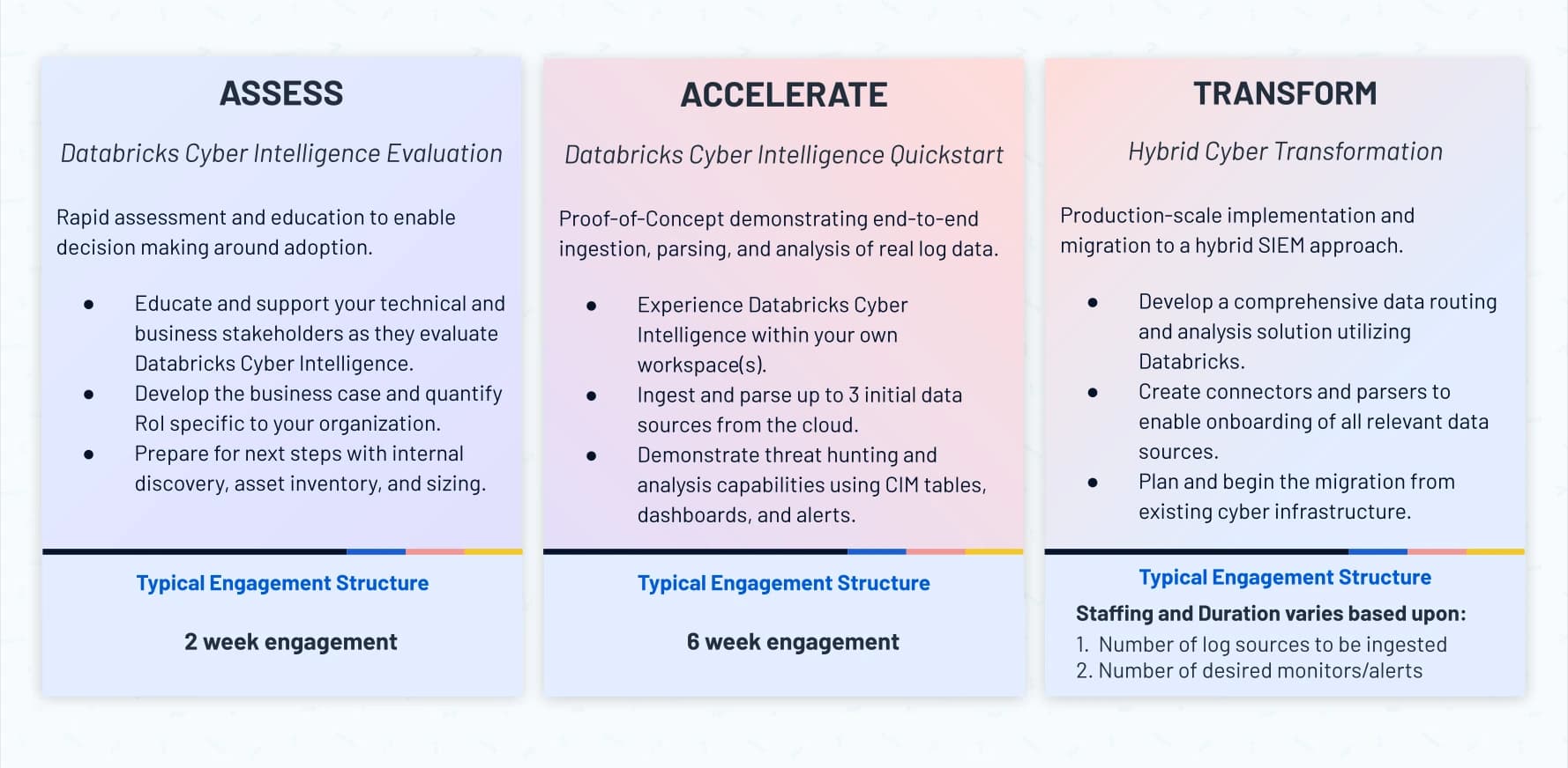 The Databricks Cyber Intelligence platform can provide clients with a more cost-efficient yet equivalently functional SIEM system when compared to common alternatives.